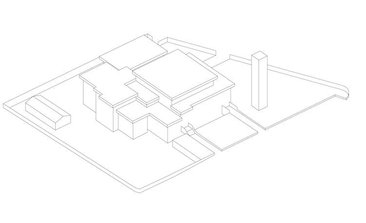 | cota do pátio posterior da Igreja, de forma a reduzir o seu impacto visual e a cobertura vegetal vem dar | continuidade aos jardins adjacentes. A articulação do volume faz-se em torno de um pequeno pátio. |